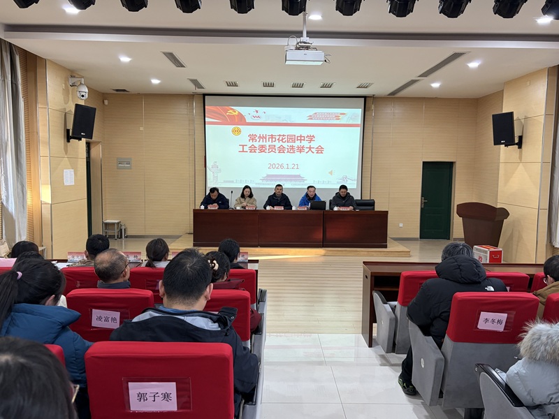 2026年1月21日下午,常州市花园中学工会换届选举大会在学校报告厅隆重召开。大会由王庆松同志主持,局工会领导、学校领导班子及全体工会代表齐聚一堂,共同见证这一关乎学校民主建设与发展的重要时刻。