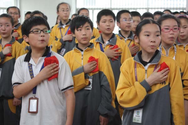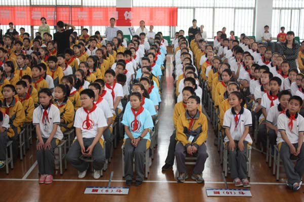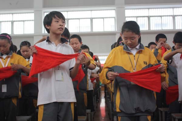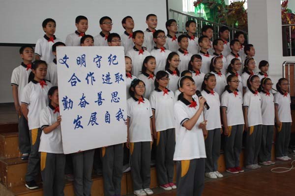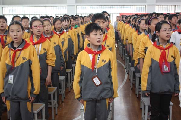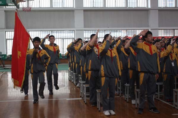 活动在《青春足迹》的视频回顾中拉开序幕:一年来,大家在夏令营上的颗颗汗珠、矫健身影,在体育节开幕式上的多姿多彩、青春活力,在艺术节上的认真的神情、嘹亮的歌声,家长开放日上的欢声笑语、纯真亲情--------,无不令同学们激动不已,思绪万千。在庄严的少先队离队仪式与新团员宣誓让所有在座的同学们深知:摘下胸前的红领巾,童年的记忆将渐渐为流逝的年华所尘封,而青春的航船已经扬帆起航!是的,我们正青春;是的,我们正成长!