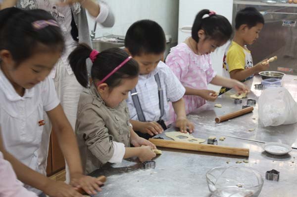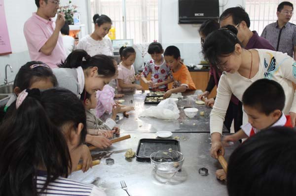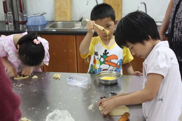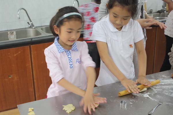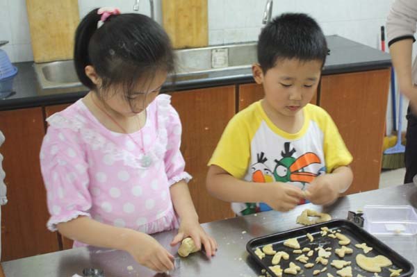 “六一”这天,在家政实验室开辟了两个房间分别做游戏室和DIY饼干室,迎来了兴高采烈的孩子们和他们的爸爸妈妈,有的一家三口,有的母子或父子同行。教师们在繁重的教学之余,带着自己的孩子来到这儿,一起享受亲子之乐,过了一个难忘的“六一儿童节”。